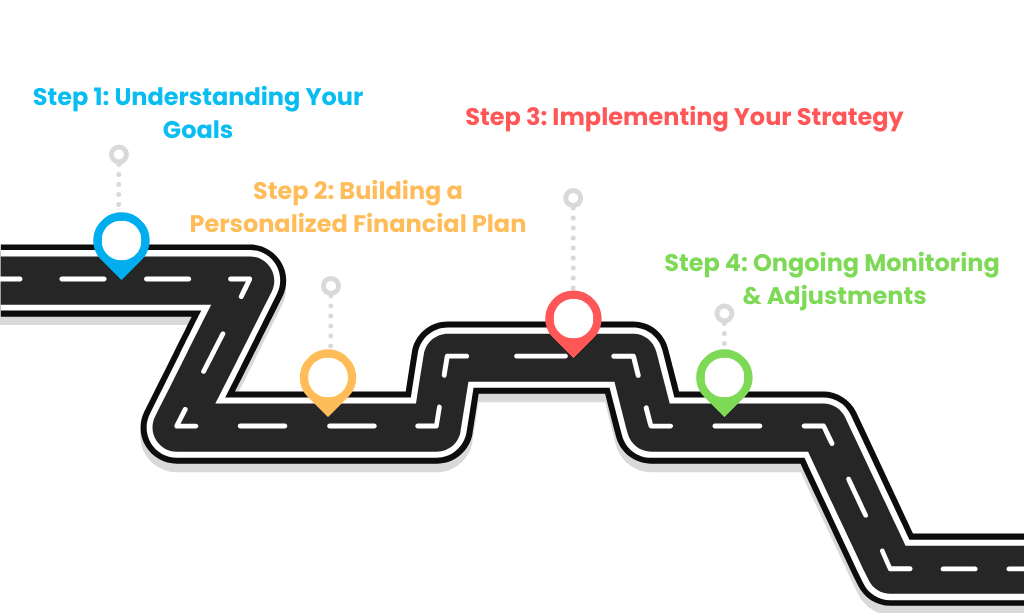 Step 4: Financial planning is not a one-time event. It is an evolving process. We continuously review your plan, making adjustments as needed to align with market changes, life transitions, and new opportunities.